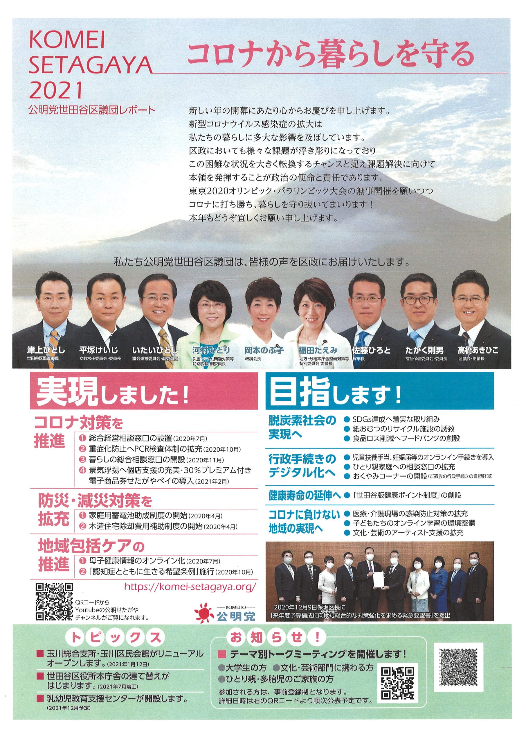 活動報告 2021.01.03 区議団レポート2021を発行しました! Post Share Line note 記事のタイトルとURLをコピーする 本日付けの一般紙への折り込みに公明党世田谷区議団レポート2021<新春号>を発行いたしました。 皆様、ぜひご一読ください! あけましておめでとうございます! 前の記事 核兵器禁止条約がきょう発効へ 次の記事